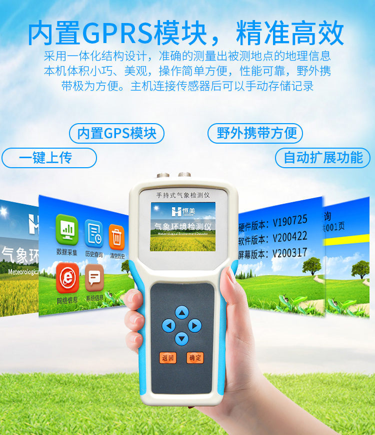 采用一體化結(jié)構(gòu)設(shè)計(jì),內(nèi)置GPS模塊,GPRS模塊,外置SD卡,能準(zhǔn)確的測量出被測地點(diǎn)的地理信息,界面除顯示所測環(huán)境參數(shù)、存儲數(shù)據(jù)外,還可顯示測點(diǎn)的經(jīng)緯度。通過內(nèi)置的GPRS一鍵上傳被測點(diǎn)的環(huán)境因子測量數(shù)據(jù)等。同時(shí)還可以通過外置SD卡直接把數(shù)據(jù)導(dǎo)出到電腦上。(可選)