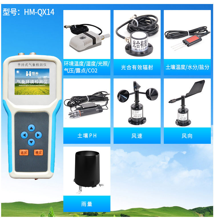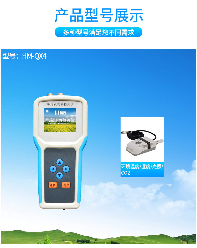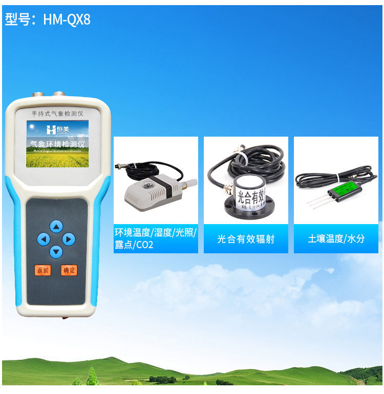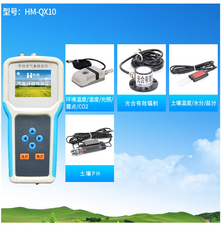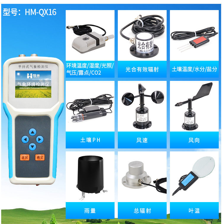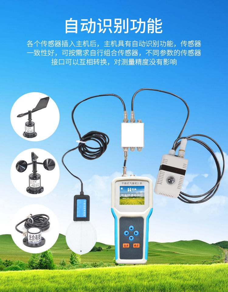 手持式智能農(nóng)業(yè)氣象環(huán)境檢測儀是我們專門針對農(nóng)田、草場局部小尺度環(huán)境設(shè)計(jì)的,對與植被和農(nóng)作物生長密切相關(guān)的土壤、水氣等環(huán)境參數(shù)監(jiān)測的農(nóng)田小氣候站。它主要觀測與農(nóng)業(yè)相關(guān)的空氣溫度、空氣濕度、光照強(qiáng)度、二氧化碳濃度、露點(diǎn)溫度、光合有效輻射、土壤溫度、土壤水分、土壤鹽分、土壤PH、風(fēng)速、風(fēng)向、降雨量、大氣壓力、總輻射、葉面溫度等16個(gè)環(huán)境參數(shù)氣象要素,為農(nóng)業(yè)科研、農(nóng)業(yè)生產(chǎn)等提供良好的支持。